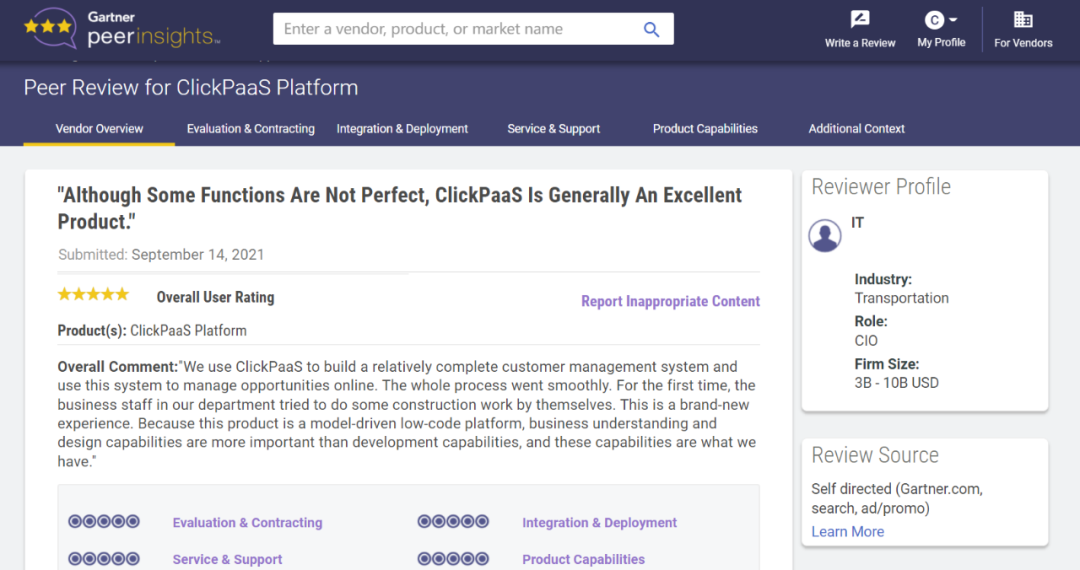 Tips::::::::::::【Peer Insights】——用户对企业IT产品和服务发布真实评价的平台。。。。。。。。。。目前已有355个市场,,,,,,,,,255,000条经过验证的评价。。。。。。。。。。每一条评价Gartner会针对参评企业营收规模及参评人员信息做验证、、、、、评价内容做多维核实。。。。。。